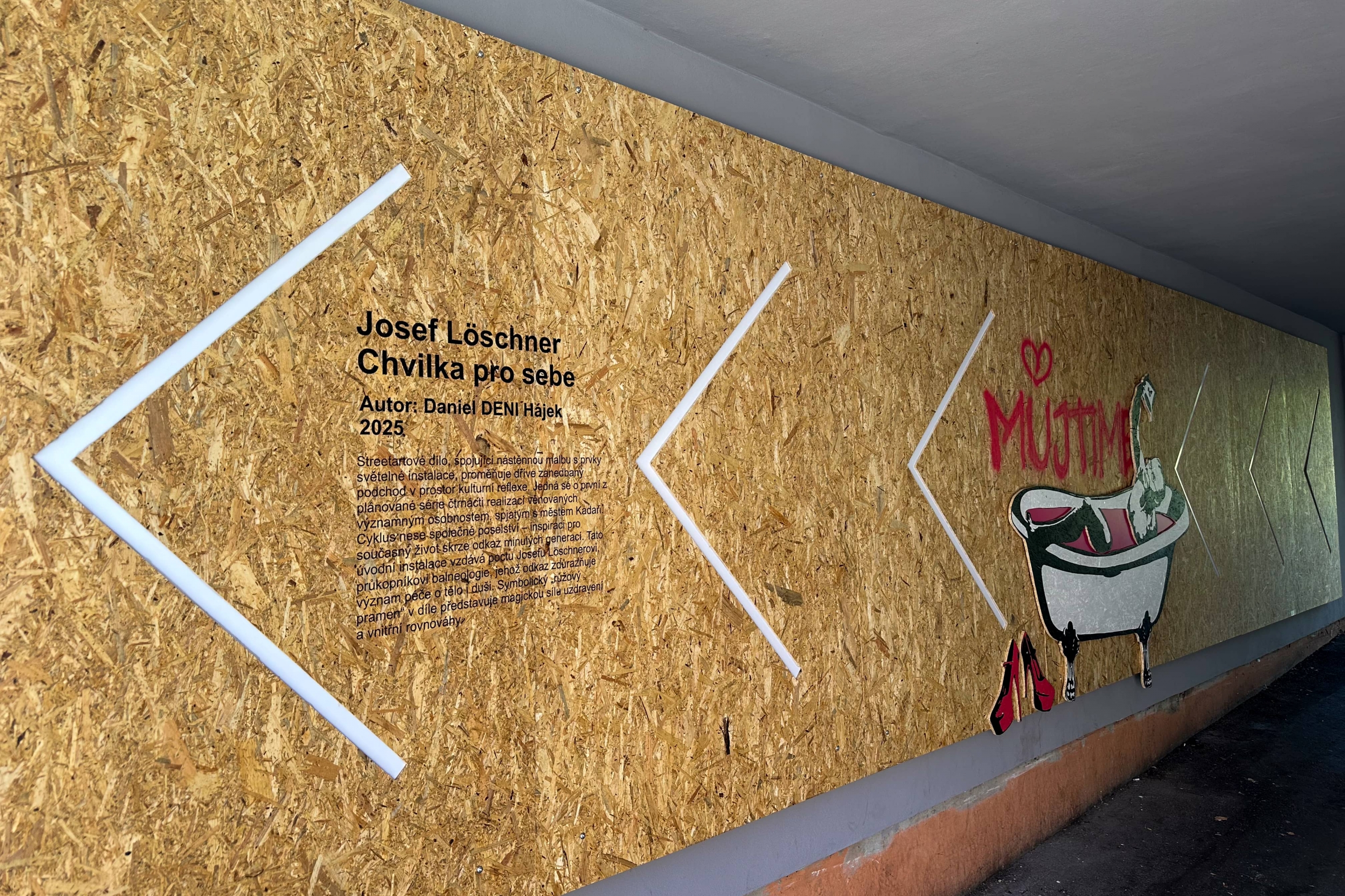 Streetartové dílo, spojující nástěnnou malbu s prvky světelné instalace, proměňuje dříve zanedbaný podchod v prostor kulturní reflexe. Jedná se o první z plánované série čtrnácti realizací věnovaných významným osobnostem, spjatým s městem Kadaň. Cyklus nese společné poselství – inspiraci pro současný život skrze odkaz minulých generací. Tato úvodní instalace vzdává poctu Josefu Löschnerovi, průkopníkovi balneologie, jehož odkaz zdůrazňuje význam péče o tělo i duši. Symbolický „růžový pramen“ v díle představuje magickou sílu uzdravení a vnitřní rovnováhy.